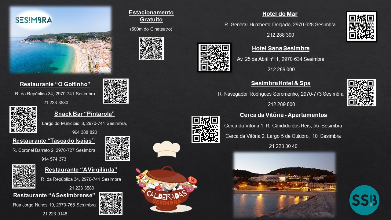 - FOUR POINTS by SHERATON SESIMBRA (têm tarifa especial para eventos, com 15% de desconto na tarifa flexível) - reservas com o código promocional ER5 através do site www.marriott.com/lisfp